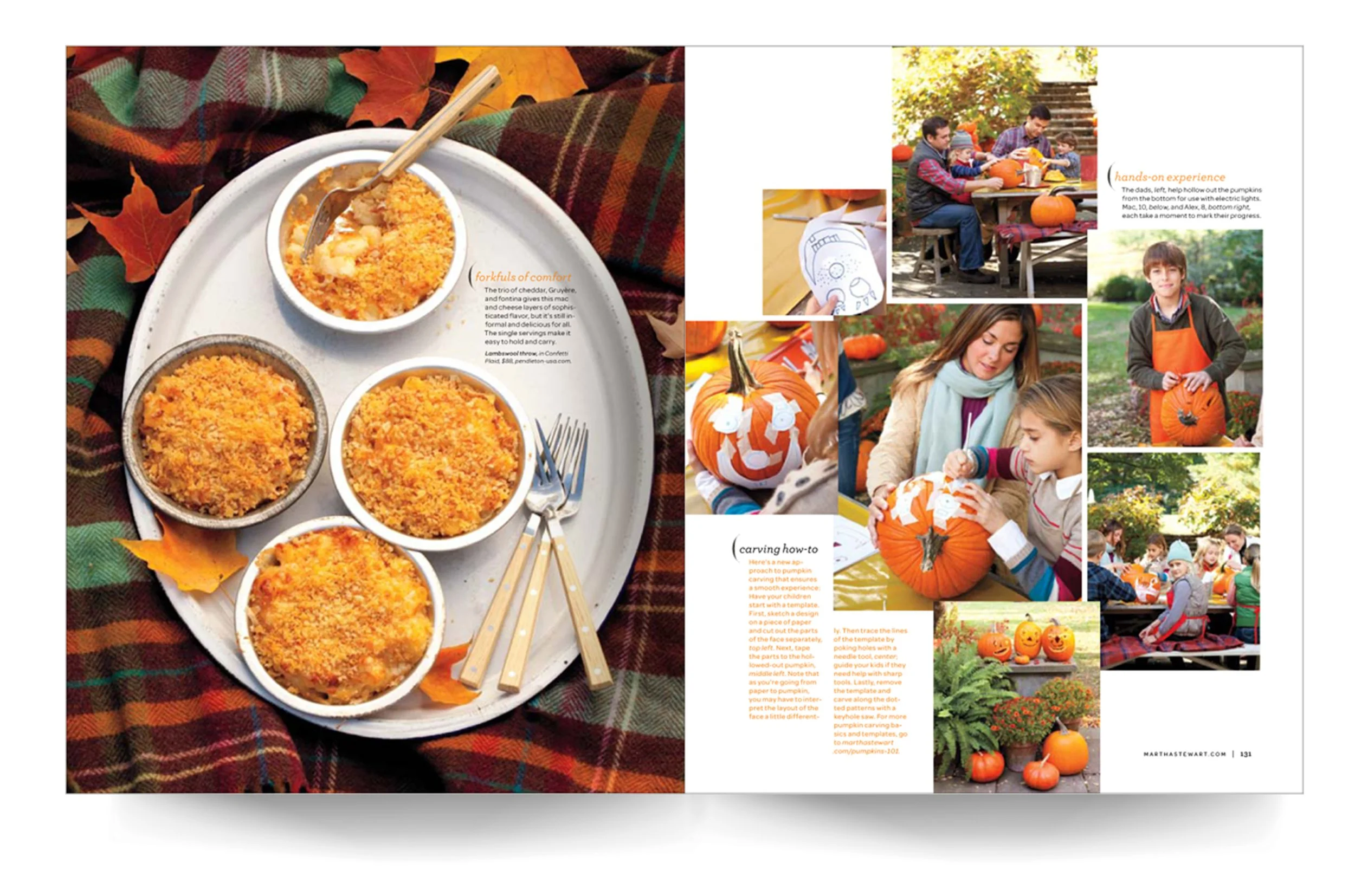 THE GREAT PUMPKIN PARTY Feature story written by Jennifer Cegielski for the October 2011 Martha Stewart Living issue. Beautiful photography, displaying unique compositions, made it easy to create such a magical fall story. The playfullness of photo placement allows the reader to enjoy many exciting moments from the story. Designer: Michele Walthers I Creative Director: Eric A. Pike I Photographer: Cedric Angeles I Photo Director: Heloise Goodman